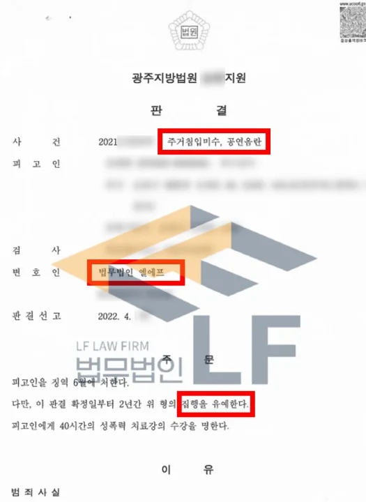 의뢰인은 늦은 시각 일면식이 없던 피해자가 사는 곳에 침입하려 하였고, 창문 너머로 피해자를 보며 성적 수치심을 주는 행위를 하여 죄질이 좋지 않았습니다. 이로 인해 피해자가 큰 정신적 고통에 시달리고 있다는 자료들을 제출하고 있어 중한 처벌이 내려질 것이 예상되었습니다.