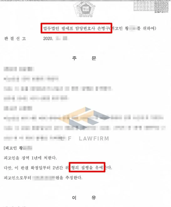 그래서 변호인은 의뢰인에게 유리한 양형 자료들을 잘 수집한 뒤 변호인 의견서를 작성하여 법원에 제출하였으며, 의뢰인이 현재 처한 상황을 매우 구체적으로 잘 설명하며 선처를 구하는 적극 조력 활동을 해 집행유예를 받을 수 있게 되었습니다.