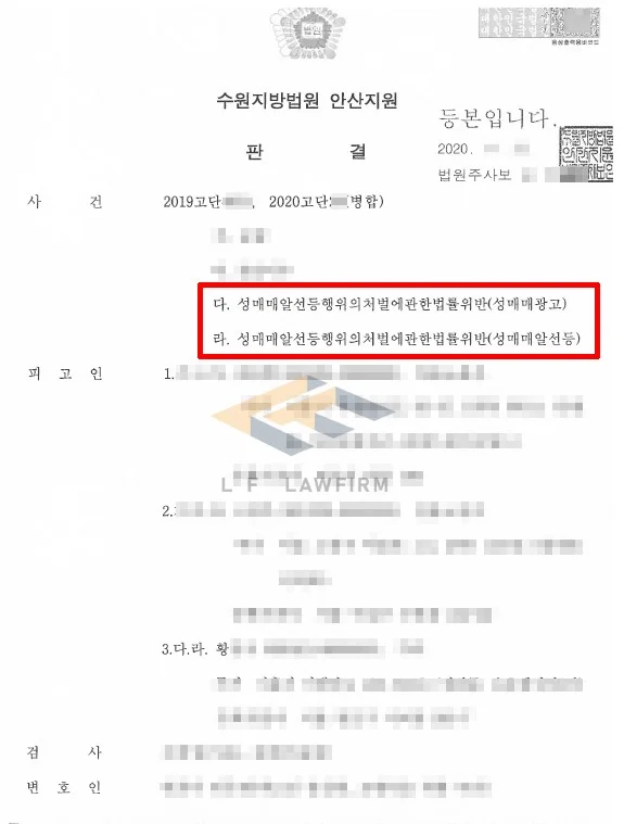 의뢰인은 약 9개월 동안 성매매 업소를 운영하고, 약 3년 동안 인터넷을 통해 성매매 광고 사이트를 운영하여 범죄 수익으로 약 5억 원 정도를 얻었다는 사실이 적발되어 수사기관의 조사를 받게 되었고 이후 성매매 광고와 알선죄로 기소되어 재판을 받게 되었습니다.