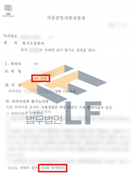변호인 조력단은 사건 내용을 면밀히 파악하여 사건 해결에 필요한 정상 자료를 안내하였고, 의뢰인의 변호인으로서 피해자의 변호사를 통해 원만한 합의를 대행하였습니다. 또한 의뢰인에게 전달받은 정상 자료를 통하여 변호인 의견서를 작성하는 조력 활동을 하였습니다. 그렇게 하여 상해죄에 대해 기소유예로 마무리를 지을 수 있게 되었습니다.