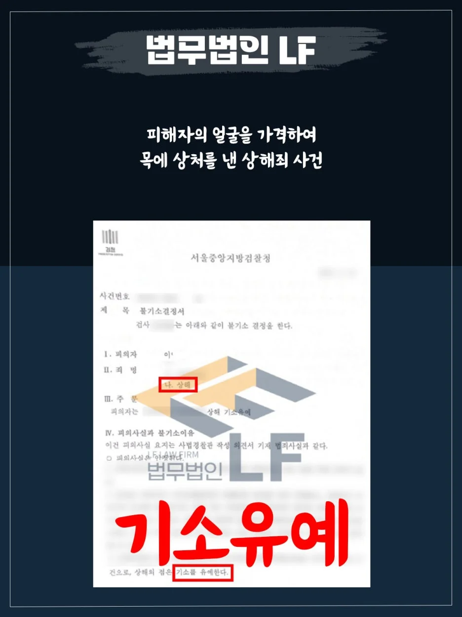 의뢰인은 피해자에게 강제추행을 저질렀으며 본 과정에서 피해자가 의뢰인의 모자를 잡아당기자, 주먹으로 얼굴을 쳤습니다. 결국 피해자의 목에 상처가 발생하게 되어 상해죄로 입건되어 조사를 받게 되었습니다.