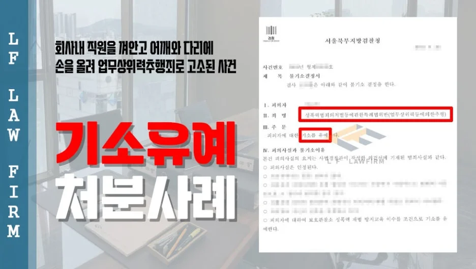 회사 내 직원을 껴안고 어깨와 다리에 손을 올려 업무상위력추행죄로 고소된 사건