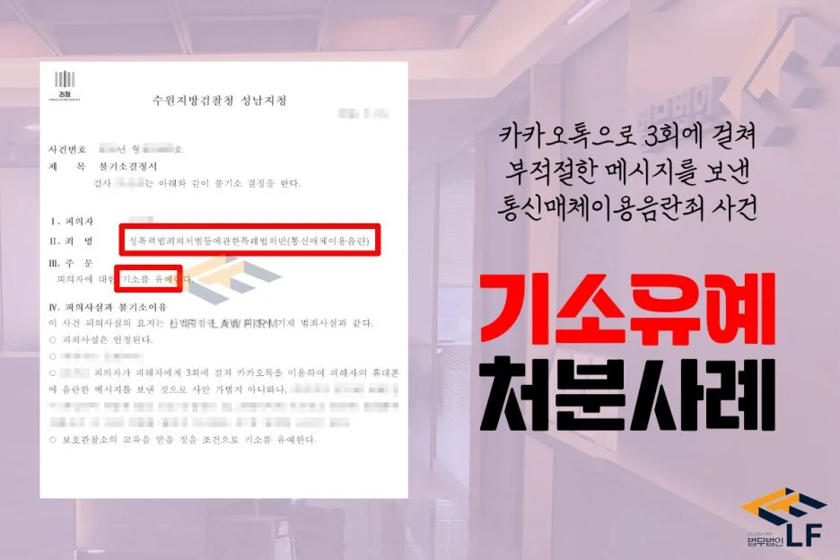 의뢰인은 카카오톡 애플리케이션을 이용하여 피해자에게 성희롱 메시지를 3회에 걸쳐 보내게 되었는데, 이를 받은 피해자가 고소를 하였고, 이에 의뢰인은 성폭력 범죄의 처벌 등에 관한 특례법 위반으로 수사기관의 조사를 받게 되었습니다.