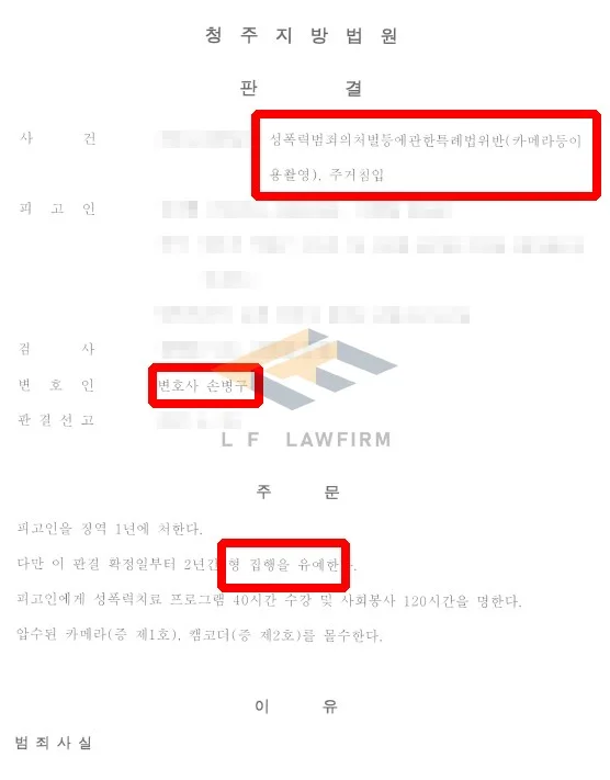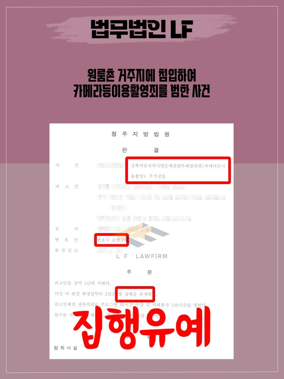 의뢰인은 이 사건 자신의 범행 사실을 모두 인정하고 있었으나 단순한 카메라등이용촬영죄가 아닌 거주지에 무단 침입하여 발생시킨 사건이었고, 그 범죄 횟수도 약 30차례 가까이 되는 상황이었습니다.