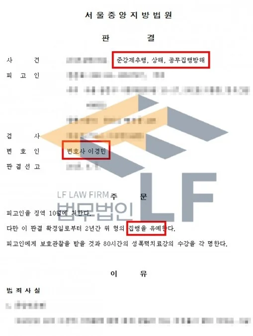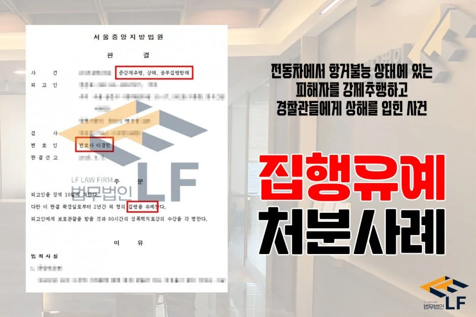 그러던 중 지하철 경찰대 소속 경찰이 이를 목격하게 되었고, 현행범으로 체포하려고 하자 의뢰인은 수갑을 차지 않기 위해 발로 경찰관들을 걷어 차 손등과 손바닥 부위에 찰과상을 입혀 상해와 공무집행방해 혐의로 기소되어 재판을 받게 되었습니다.