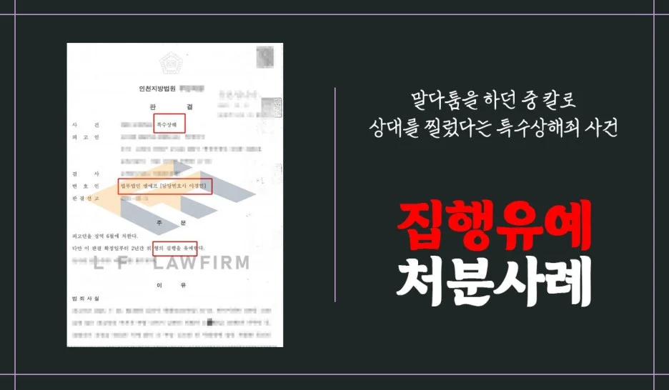 의뢰인은 피해자와 말다툼을 하던 중 부네 못 이겨 칼을 들고 상대방을 찔렀다는 특수상해죄 혐의로 입건되어 경찰 조사를 앞두고 있었습니다. 특수 상해죄 중에서도 칼로 상대를 찌른 경우라 합의가 되지 않는다면 구속도 생각할 수 있는 급박한 상황이었습니다.