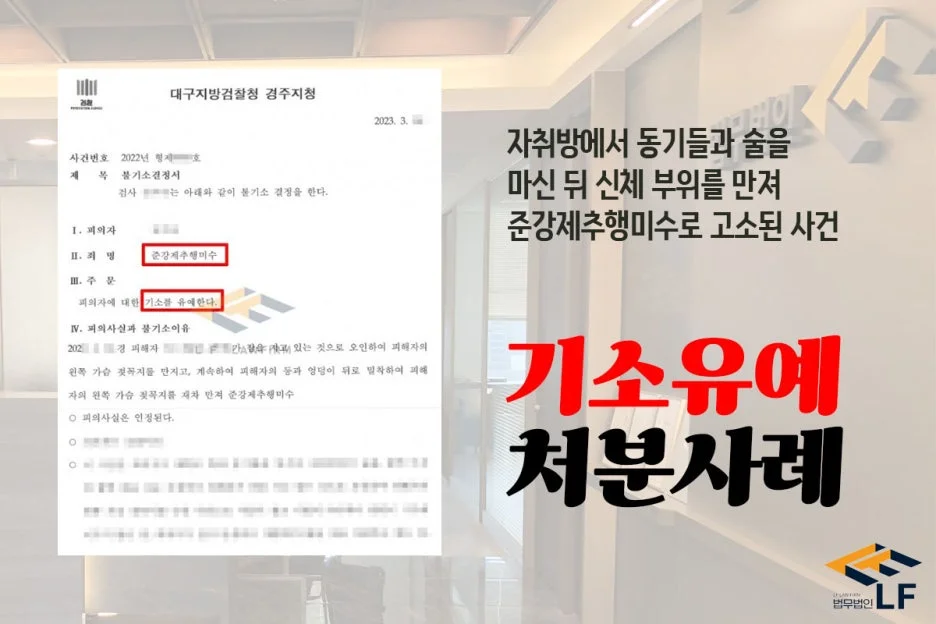 의뢰인은 대학 동기들과 자취방에서 술을 마시며 놀게 되었는데, 술을 다 마시고 잠을 청하던 중 잠에 들었다고 생각한 피해자의 몸을 만지고 신체를 밀착하는 행동을 하여 준강제추행 미수죄로 고소를 당하였고, 이에 수사기관의 조사를 받게 되었습니다.