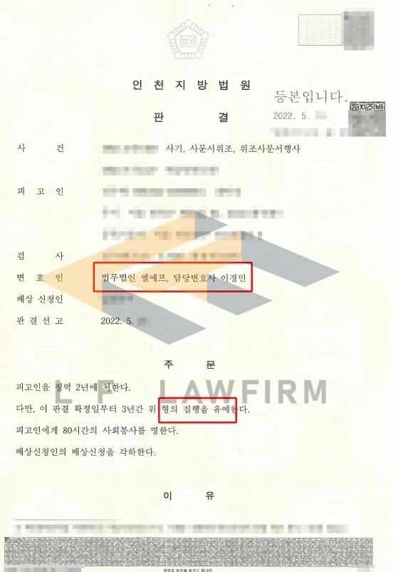이후 연락이 되는 피해자들과 연락을 하며 피해 회복에 대한 이야기를 나누었고 최종 2명과 합의가 되어 합의서까지 제출할 수 있었습니다. 그리고 마지막 변론요지서까지 제출하고 나서 최종 집행유예 판결을 받아 구속을 면할 수 있었습니다.