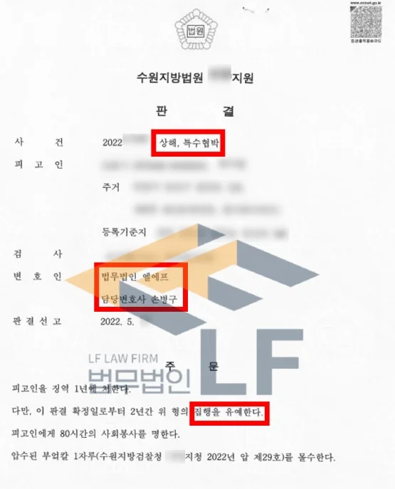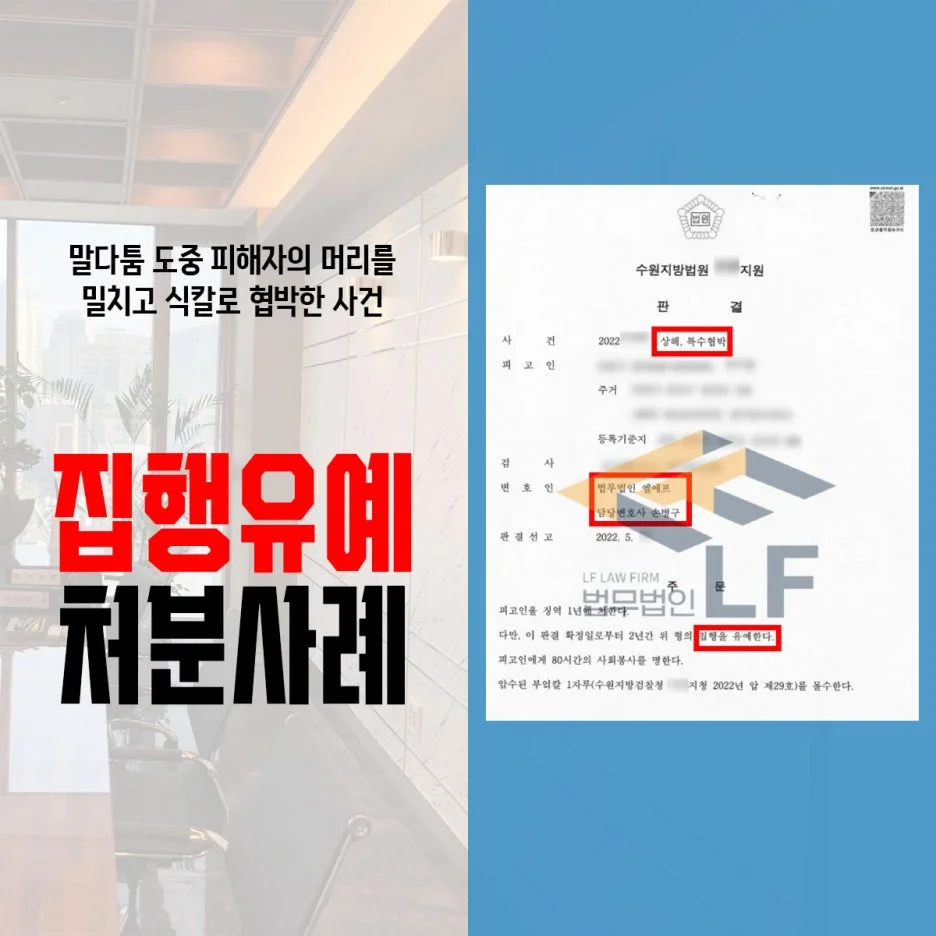 의뢰인은 상대방과 다툼이 있긴 하였지만, 위험한 물건인 식칼을 이용하여 협박하였기 때문에 죄질이 좋지 않았고 이에 더하여 상해까지 입힌 사안으로 중한 처벌이 예상되는 상황이었습니다.
