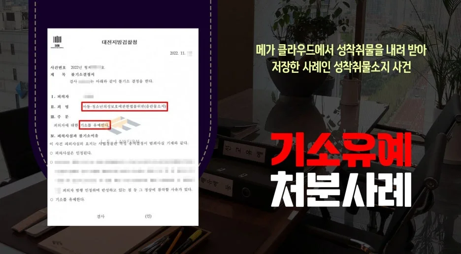 의뢰인이 메가 클라우드 계정에다 성착취물을 소지하고 있었던 것이 사실이었기에 성착취물 소지죄로 큰 처벌을 받을 위기에 처해 있었습니다.