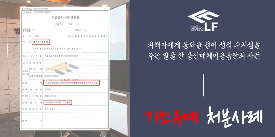 의뢰인은 전화로 부적절한 내용을 전한 사실에 대해 깊이 뉘우치고 있었고, 이 사건으로 인해 혹시나 전과가 생기게 되면 다니고 있는 회사에서 문제가 될 수 있어 걱정하고 있던 상황이었습니다.