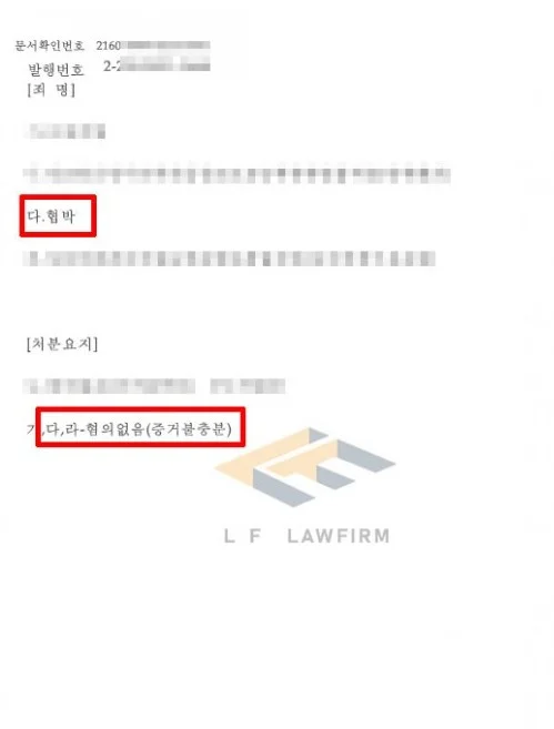 의뢰인은 당시 메시지를 보낸 사실은 있으나 항의 차 보낸 것이지 결코 협박을 할 목적으로 전송한 것은 아니라며 억울함을 변호사고 있었습니다. 그러나 해당 메시지는 상대방의 입장에서 협박으로 보일만한 이야기가 있었기에 협박죄 혐의에 대한 의심을 받으면서 조사를 받게 되는 상황이었습니다.