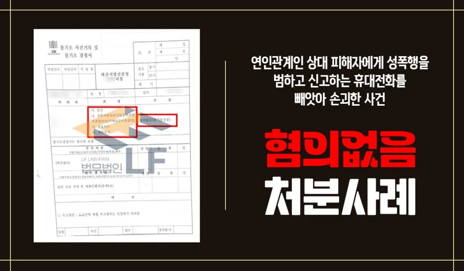 의뢰인은 연인 관계였던 상대방을 강제로 성폭행하였다는 사실로 경찰 신고를 하는 도중 피해자의 휴대전화를 빼앗아 손괴하였다는 혐의로 경찰 조사를 받게 되었습니다. 의뢰인은 피해자와 다툼이 발생하면서 감정적으로 고소를 하였기에 억울해 하였지만, 혐의에서 벗어날 수 있는 증거 자료가 부족하다고 여겨 엄중한 처벌이 예상되는 상황이었습니다.