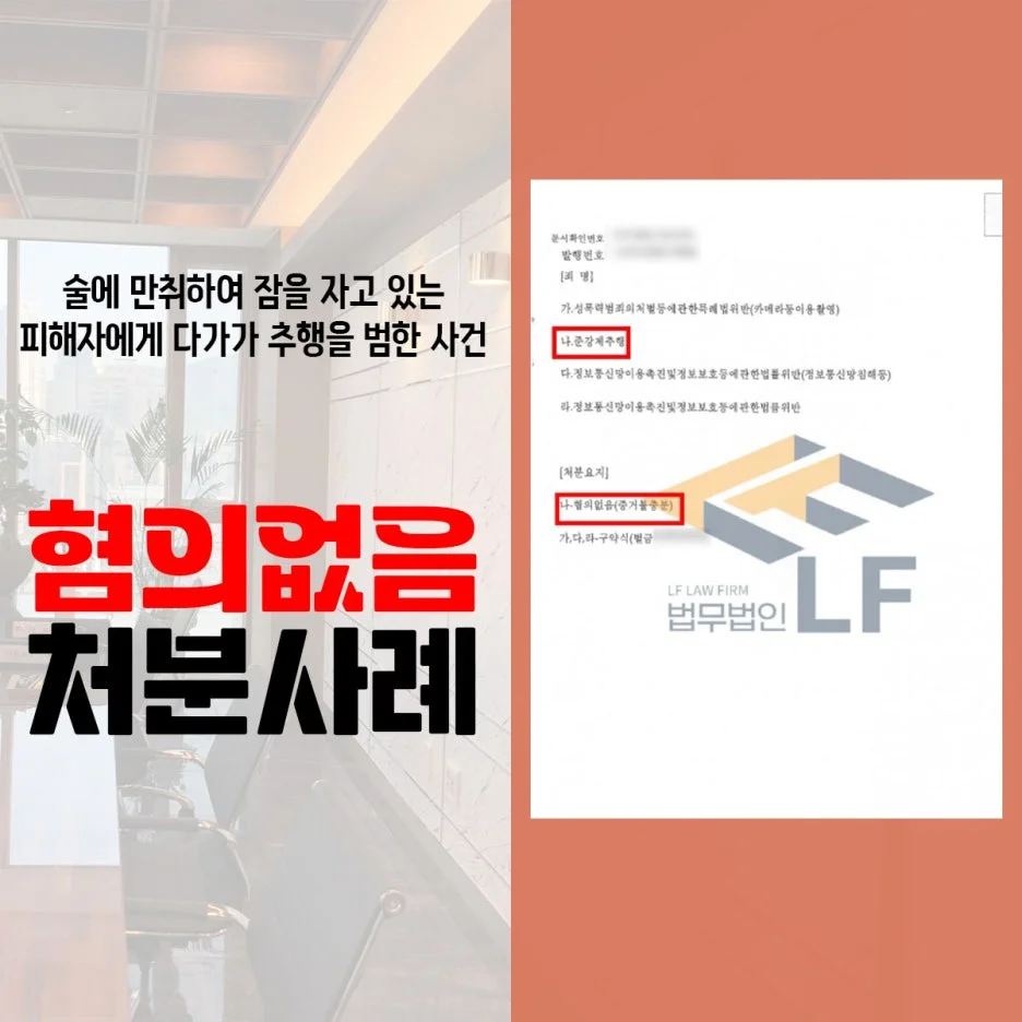 의뢰인은 술을 먹고 잠이 든 피해자를 추행한 문제로 입건되어 준강제추행죄 혐의로 경찰 조사를 받기 전이었습니다. 의뢰인은 당일 피해자와 함께 있었던 것은 사실이나 추행을 한 적이 없다며 혐의에 대해 억울함을 호소하고 있었습니다.