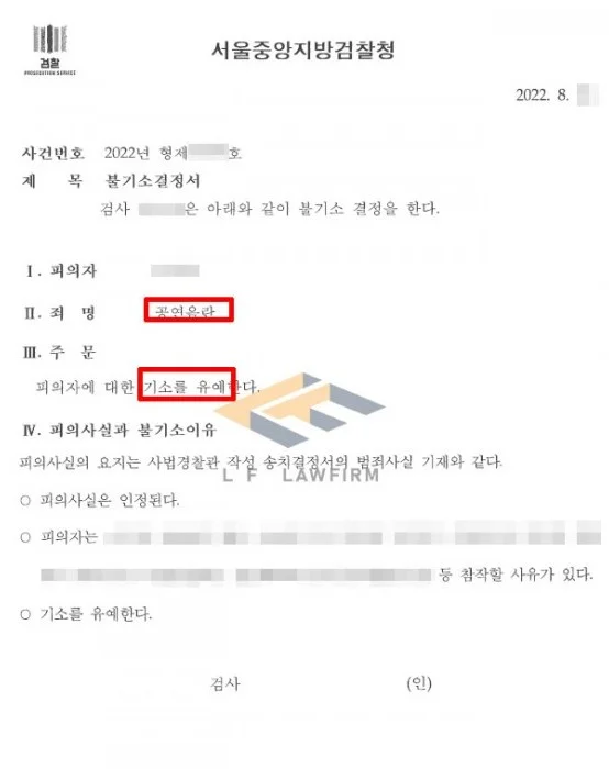 그리고 이 사건을 목격하여 피해를 본 사람과 합의를 진행하게 되었는데, 연락처 공개를 꺼려 하여 사건을 형사 조정으로 회부할 수 있게 검사를 설득하였고, 이에 사건이 형사 조정으로 회부되어 원만히 합의를 할 수 있게 되었습니다. 이후 의뢰인의 선처를 위해서 적극 변호를 하여 본 사안에 대해 기소유예를 받을 수 있게 되었습니다.