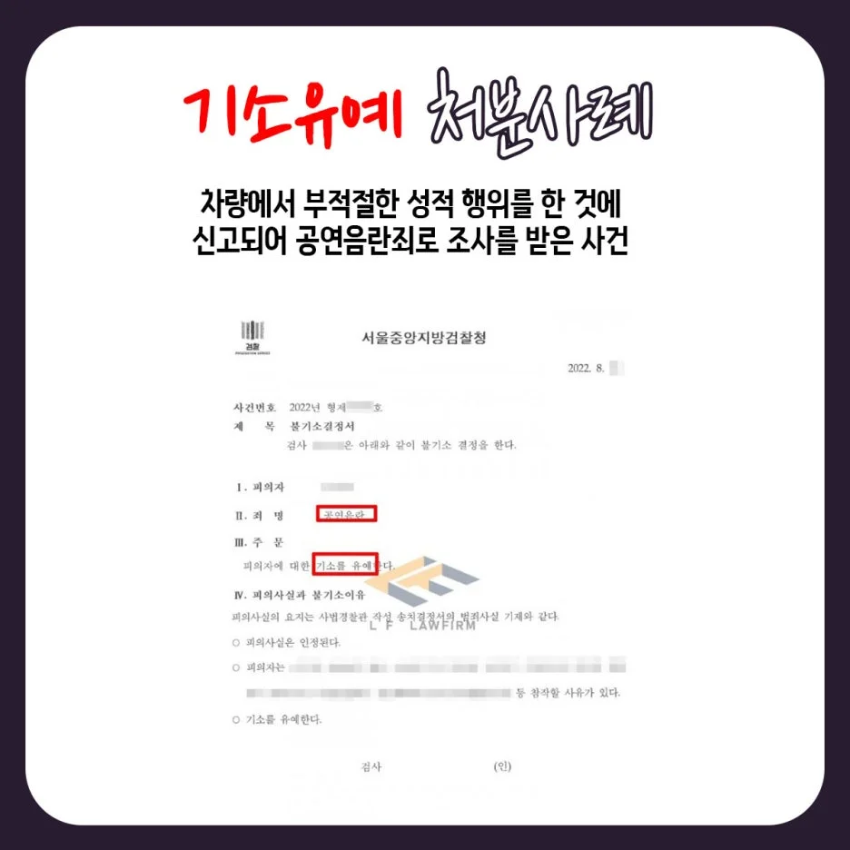 차량에서 부적절한 성적 행위를 한 것에 신고되어 공연음란죄로 조사를 받은 사건