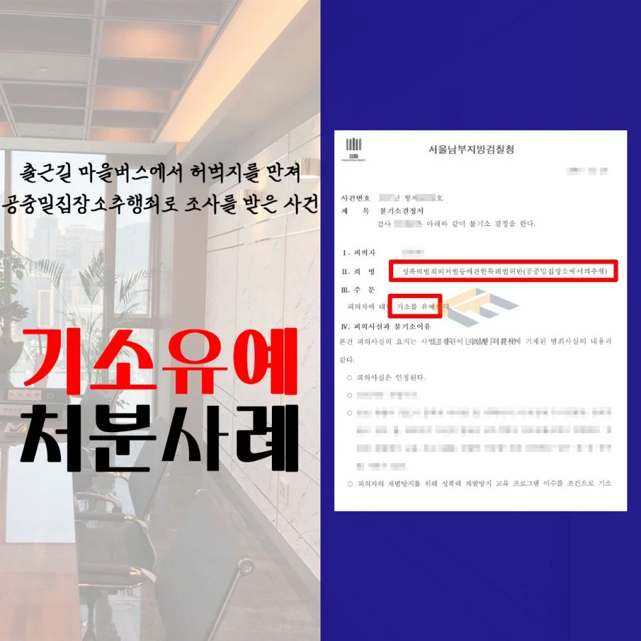 출근길 마을버스에서 허벅지를 만져 공중밀집장소추행죄로 조사를 받은 사건